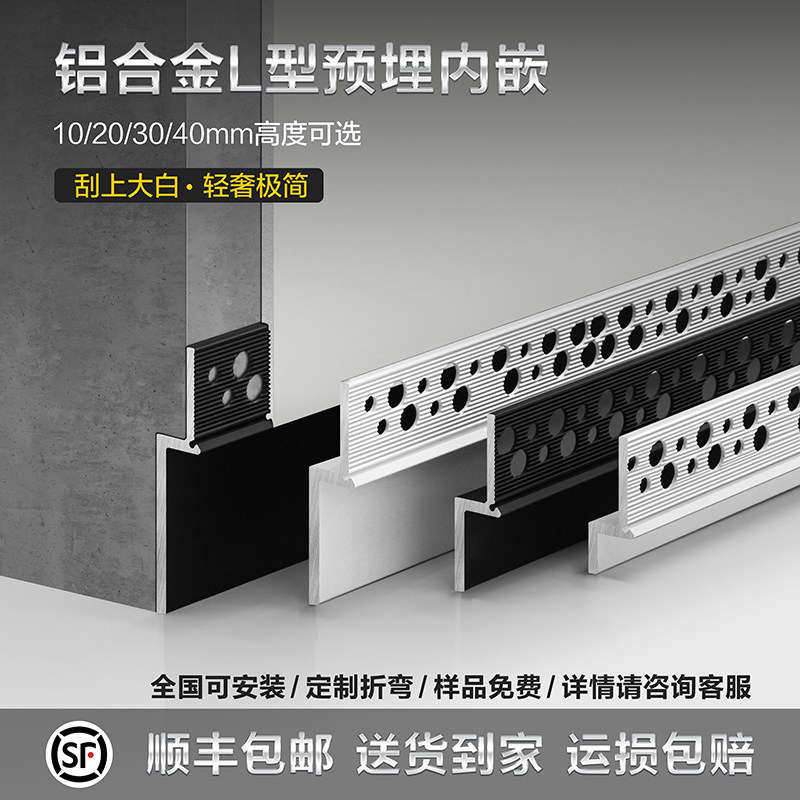 L型预埋内嵌踢脚线 铝合金批灰款金属贴脚线嵌入式隐形隐藏式内凹