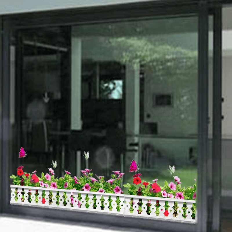 商场店铺玻璃门橱窗踢脚线花草围栏布置装饰贴纸自粘防水透明贴画