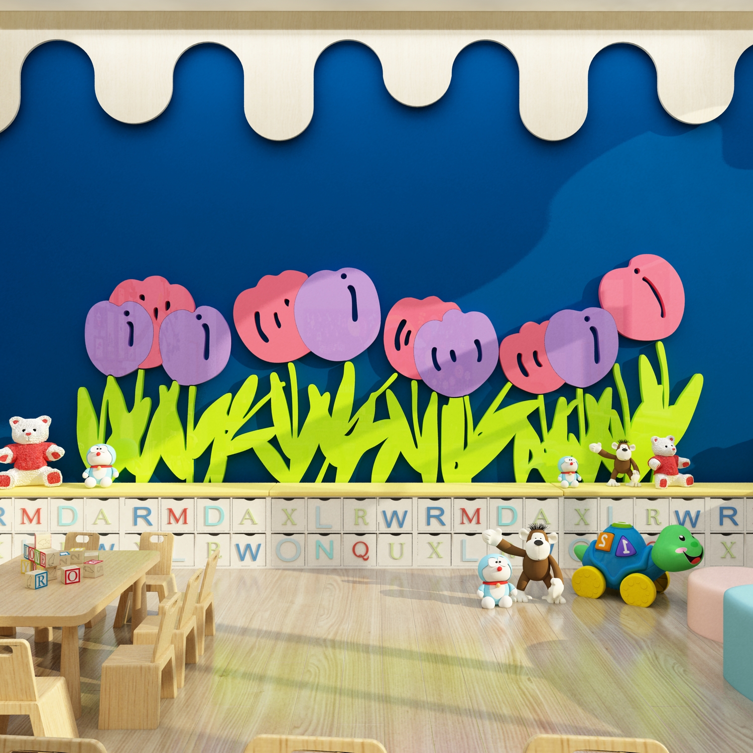 幼儿园花朵主题文化墙面装饰环境材料布置踢脚线走廊过道亚克力贴