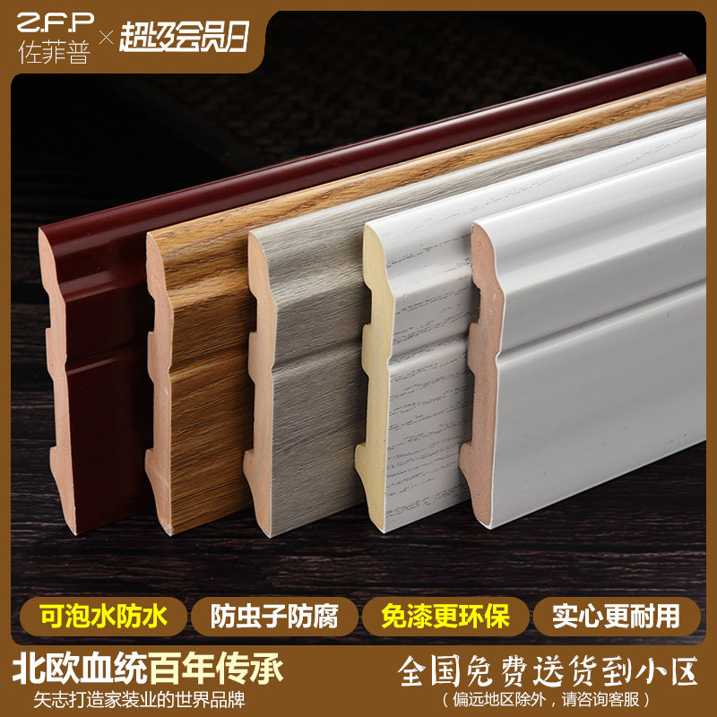 新款竹木纤维踢脚线超实木地脚线白色木塑贴脚线6cm10公分地角线8