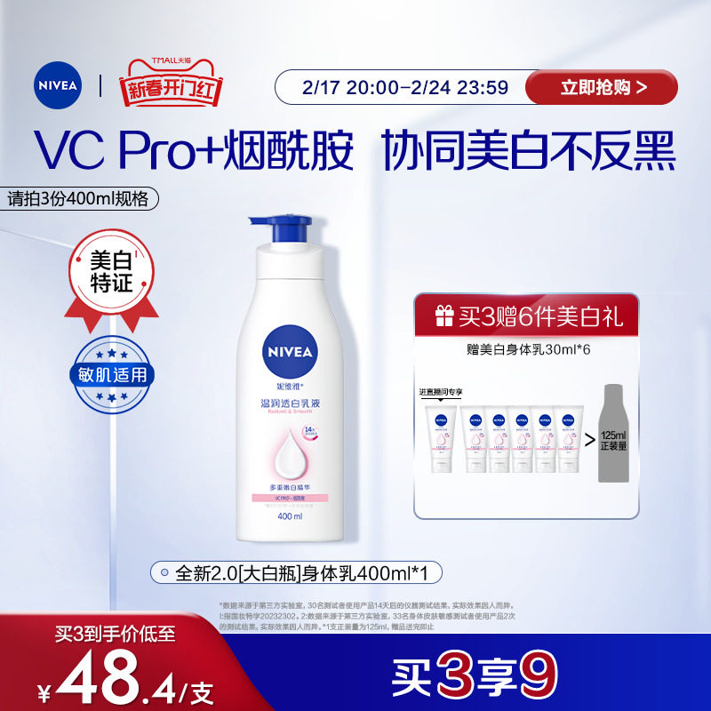【开门红】妮维雅烟酰胺美白身体乳液秋冬护肤留香持久