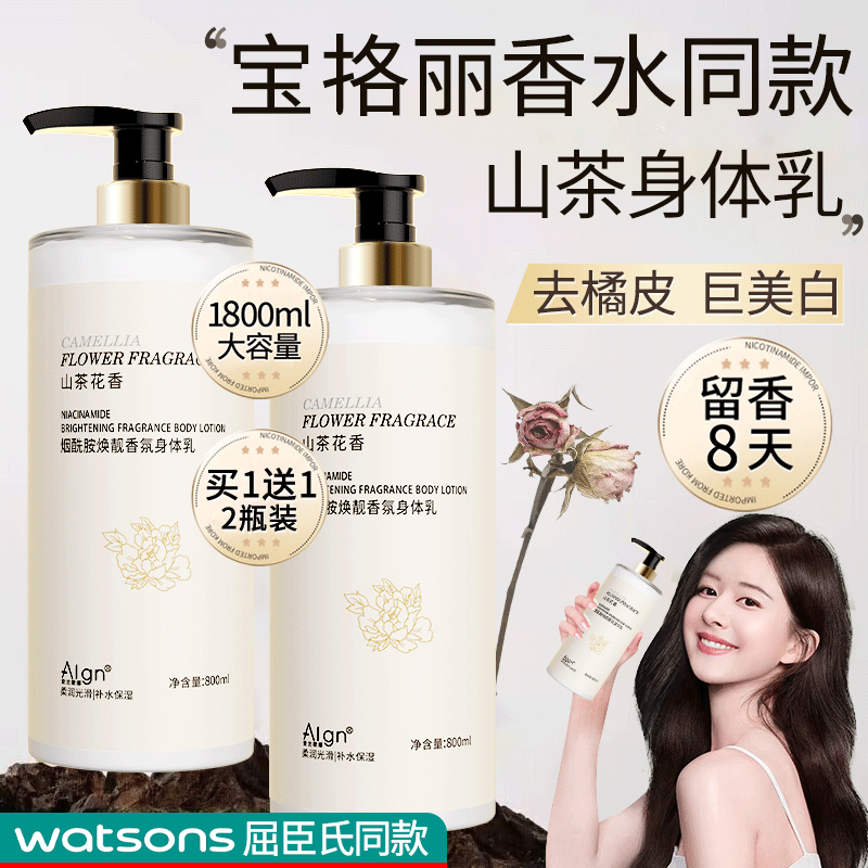 屈臣氏莹润透嫩润肤乳烟酰胺焕采保湿身体乳500ml补水滋润全身