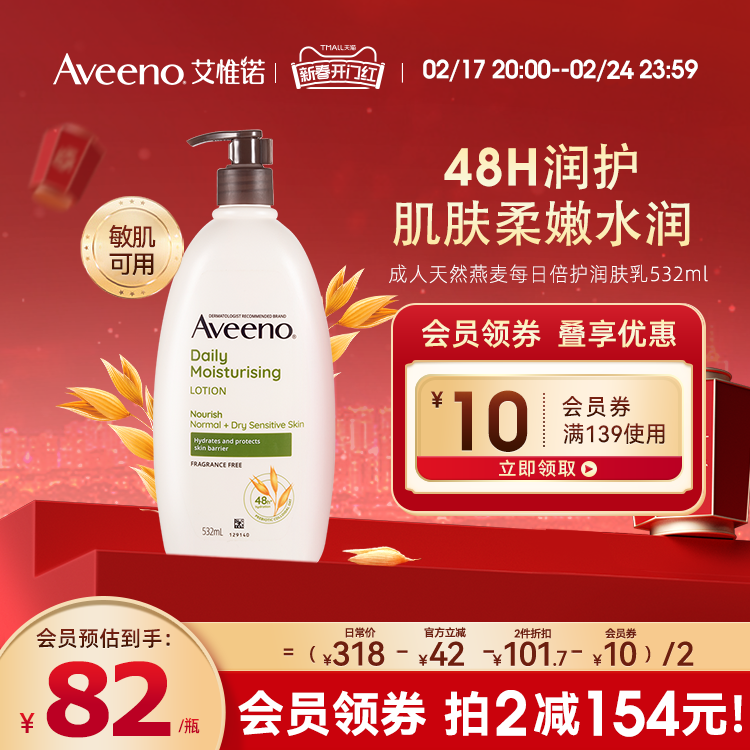 Aveeno艾惟诺/艾惟诺燕麦成人补水身体乳全身保湿持久滋润532ml
