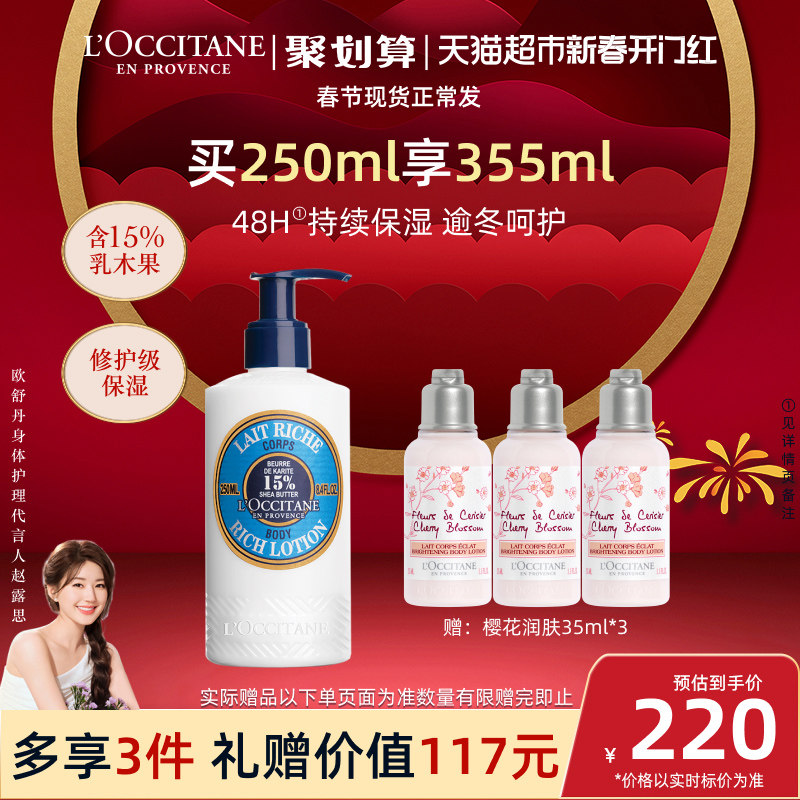 欧舒丹乳木果身体乳250ml润肤乳秋冬男女士全身留香清爽不油腻
