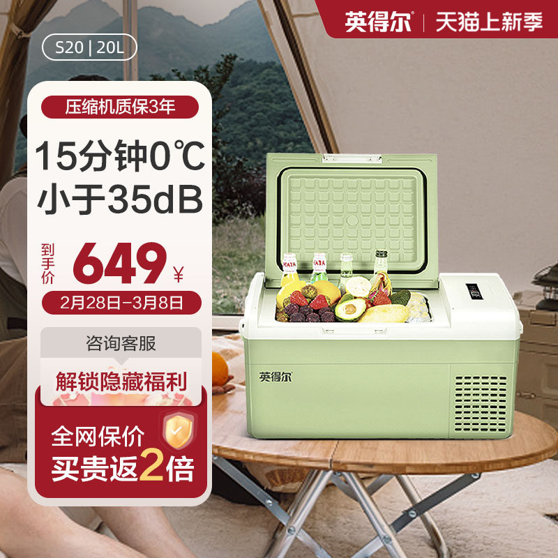 英得尔车载冰箱15/20L低噪音(≤35分贝)车家两用12V24V220V-S15
