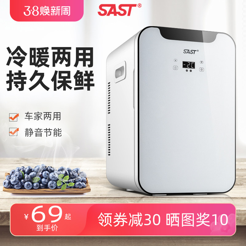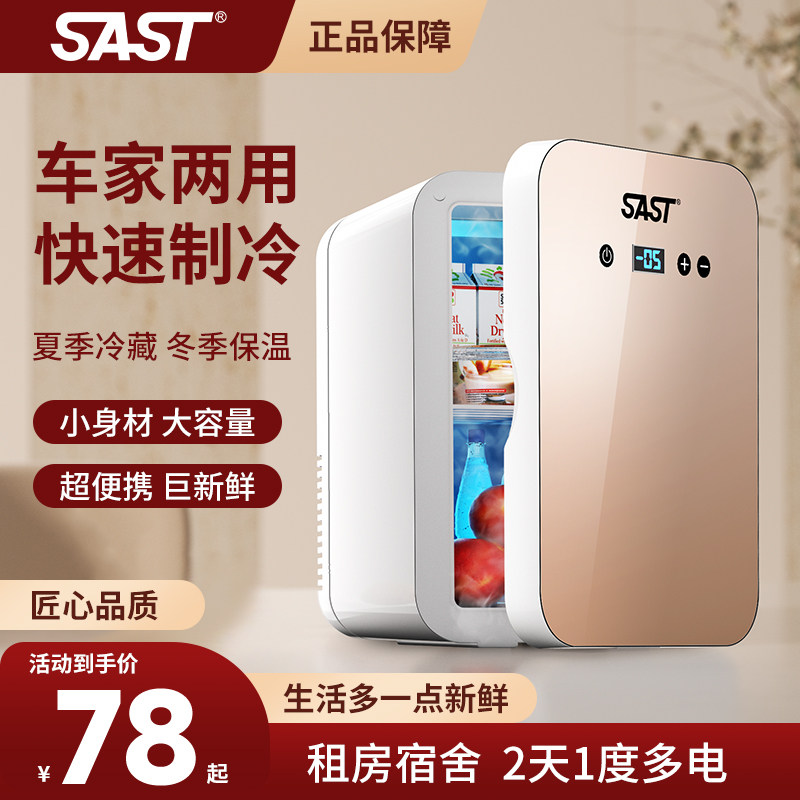 SAST车载迷你小冰箱mini宿舍出租房小型母乳单人用冷藏箱车家两用