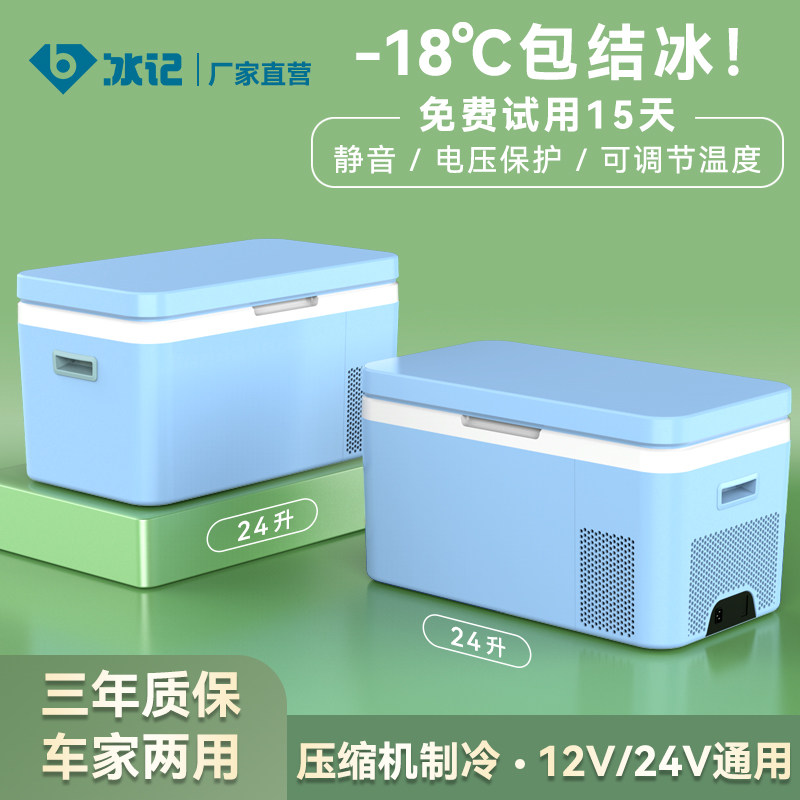 冰记车载冰箱2024新款车家两用压缩机冷藏冷冻12v24V大货车专用
