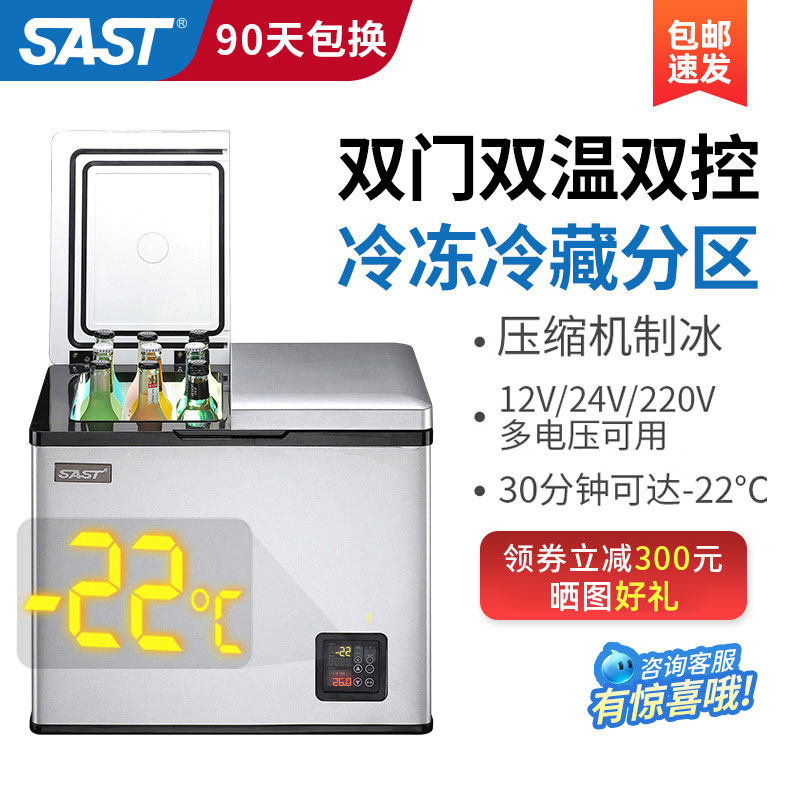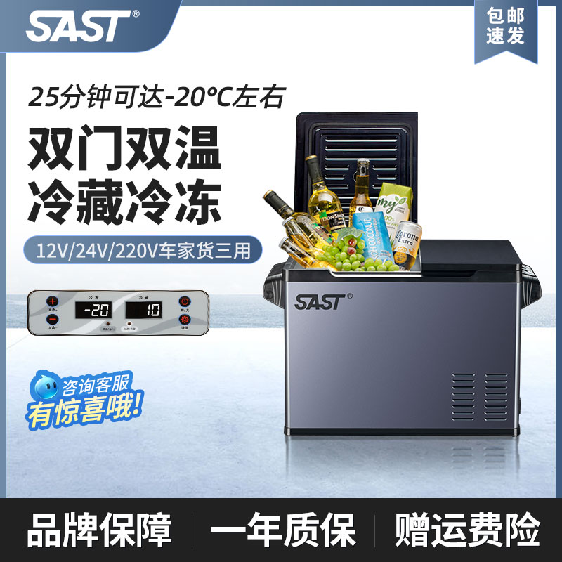 SAST车载冰箱压缩机制冷12v24v车家两用冷藏冷冻双门货车小型冰柜