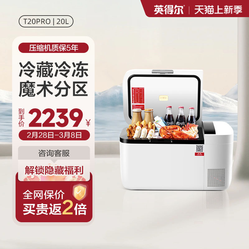 英得尔车载冰箱T20L冷藏冷冻魔术分区轿车12V家用220V