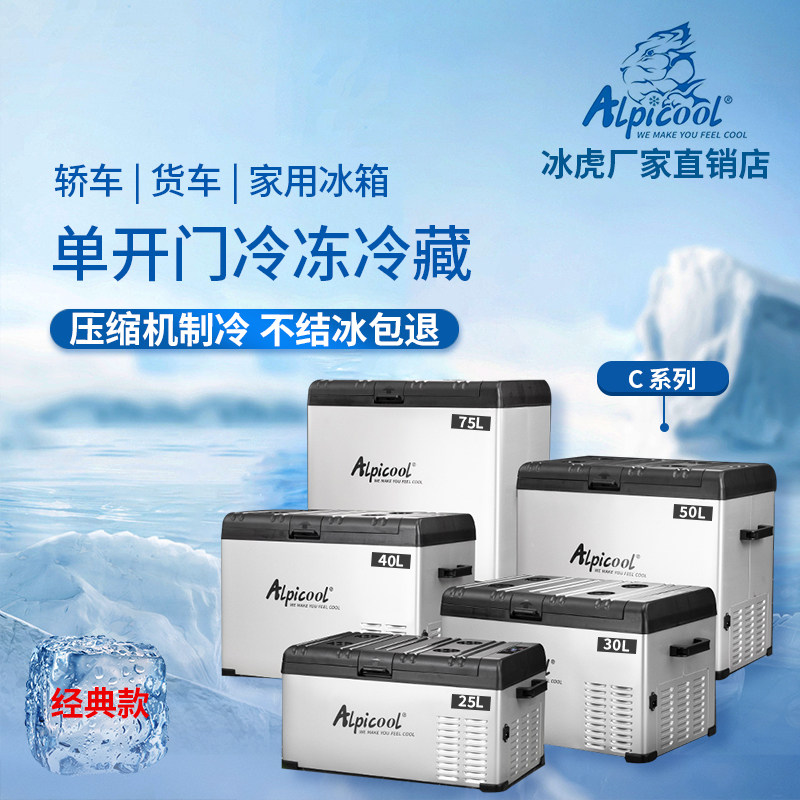冰虎车载冰箱12V24V220V车家两用压缩机制冷冷冻冷藏轿车货车冰柜
