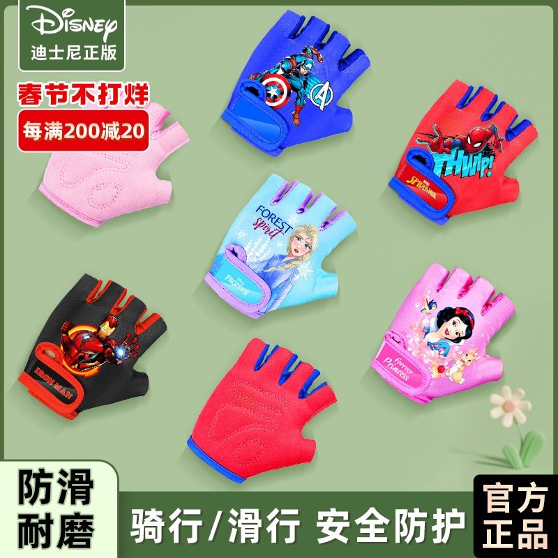 迪士尼儿童半指手套防滑运动手套攀岩轮滑平衡车骑行手套单杠防护