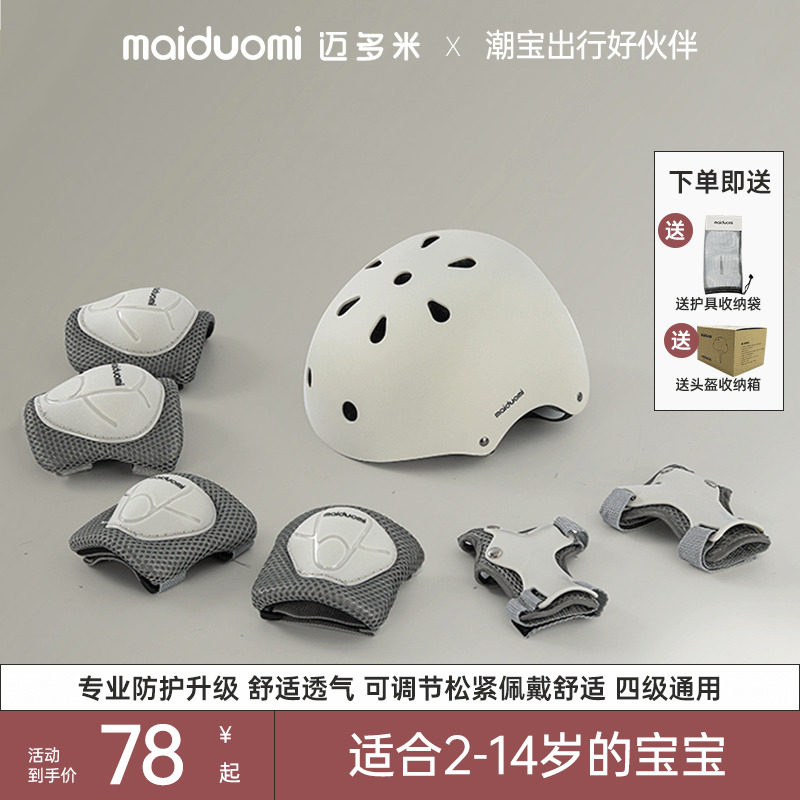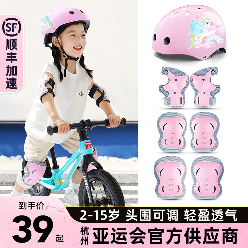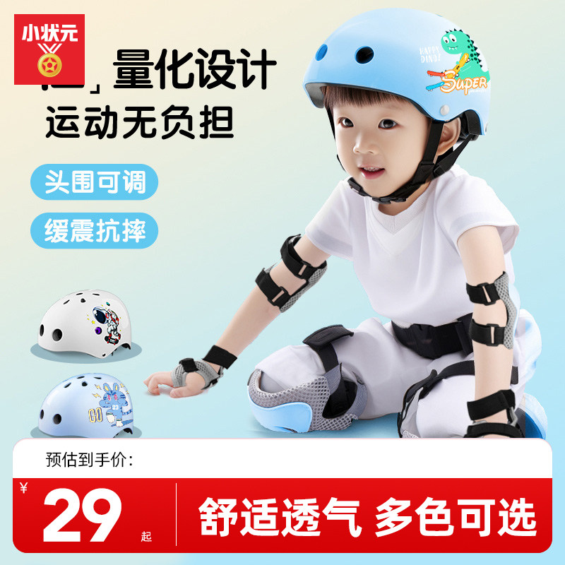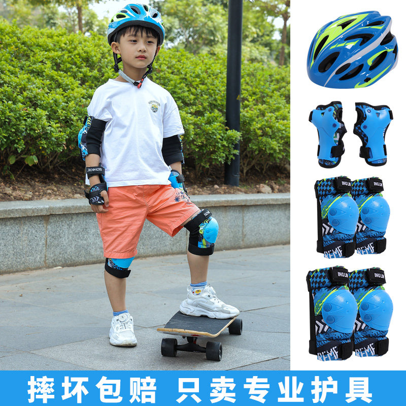 儿童运动护膝盖轮滑护具滑板套装骑行训练夏季安全防摔自行车头盔