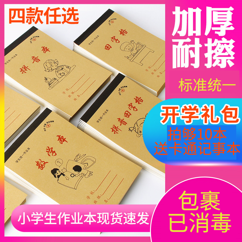 小学生1-3年级作业本幼儿园护眼本田字格数学拼音生字本写字练习