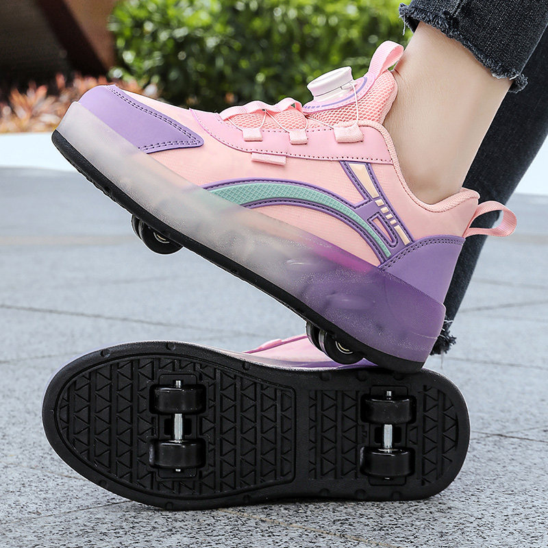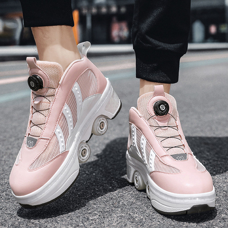 夏季透气网面四轮暴走鞋男女学生版隐形轮滑溜冰变形鞋儿童滑轮鞋