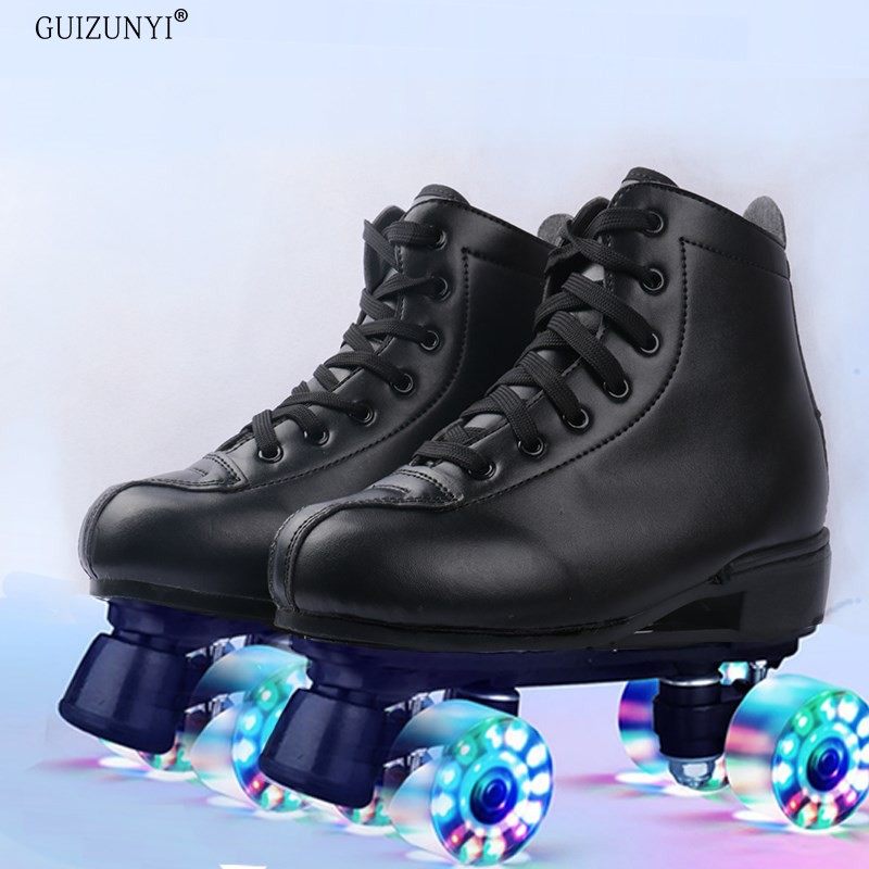 双排溜冰鞋旱冰轮滑四轮男女成年闪光成人滑冰儿童滑轮场冰专用轮