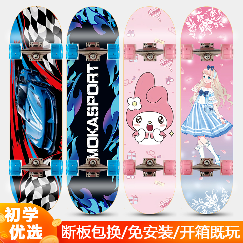 男女生初学者四轮滑板6-18岁儿童入门滑板成人双翘刷街专业滑板车