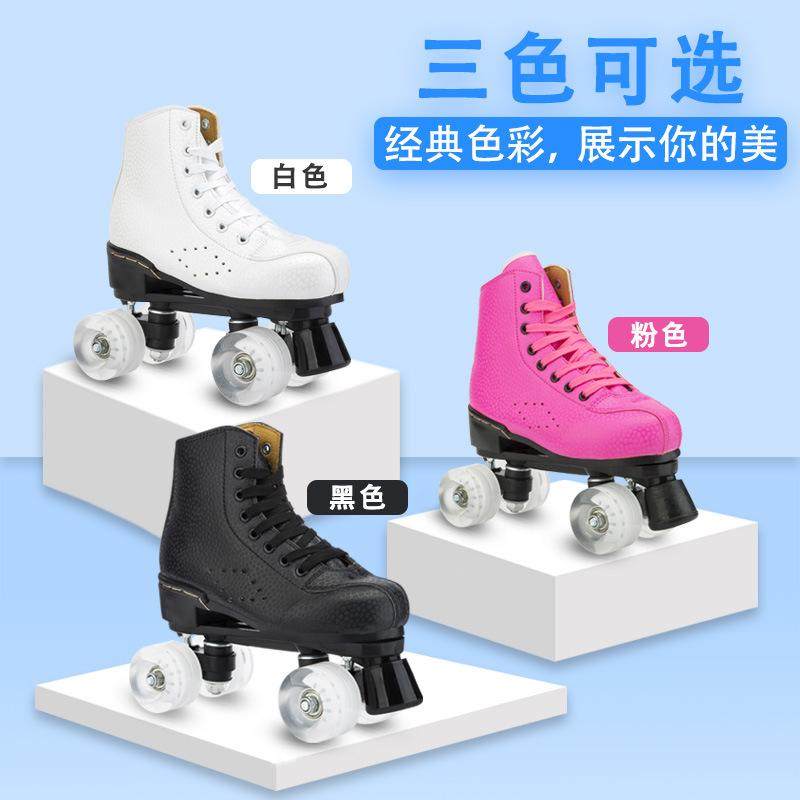 白皮成人双排溜冰鞋儿童四轮滑鞋成年男女旱冰鞋双排轮滑冰鞋闪光