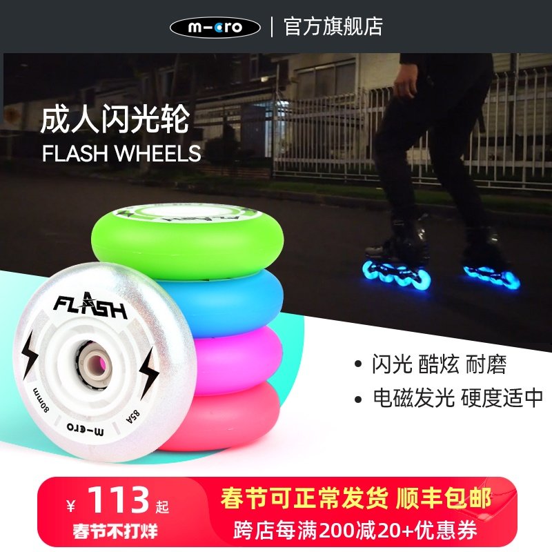 瑞士micro溜冰鞋轮子闪光轮滑鞋高弹PU耐磨成人平花鞋发光夜光轮