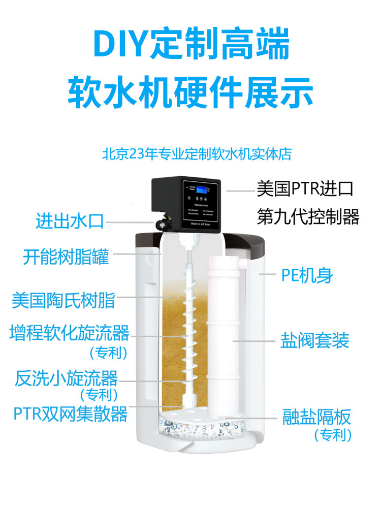 DIY软水机组装定制美国PTR控制器18L家用别墅全屋中央净水器系统