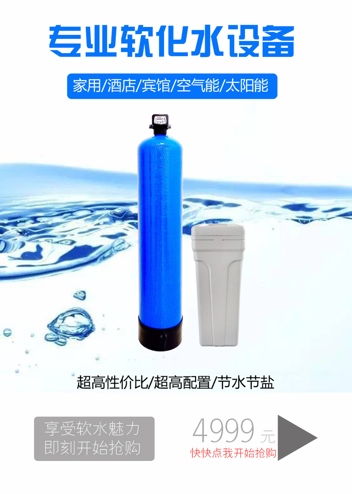 全屋大流量阻垢无盐软水机中央净水器家用农村自来水除碱前置过滤