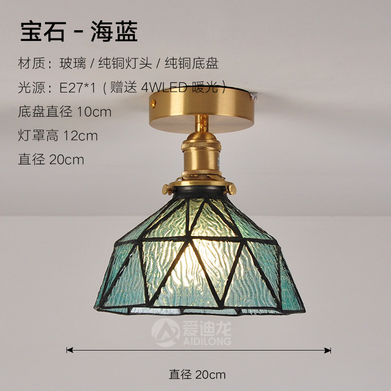 西早 法式复古玻璃全铜吸顶灯 玄关床头过道阳台吧台餐厅灯具