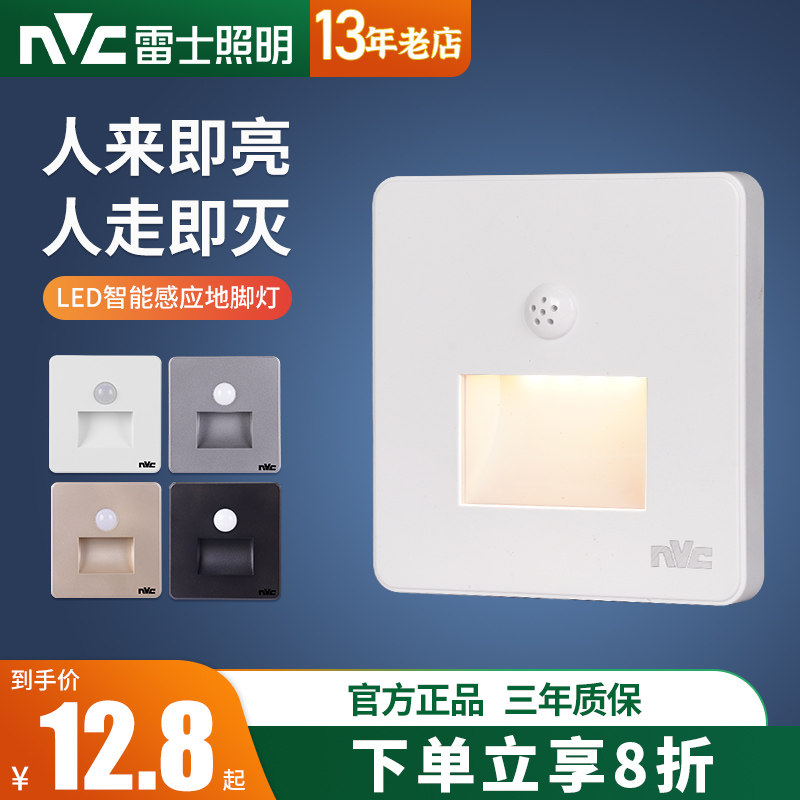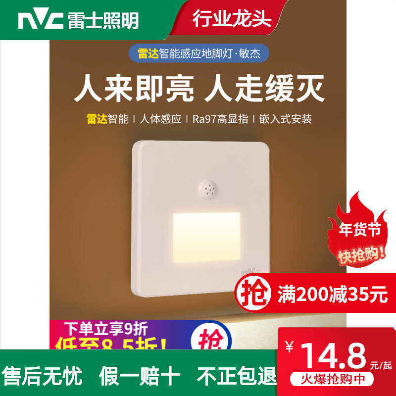 雷士照明人体感应地脚灯LED小夜灯86型嵌入式追光灯过道走廊灯