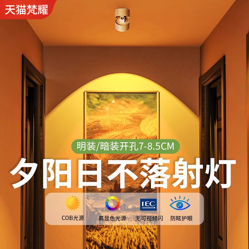 明装日不落射灯嵌入洗墙背景墙玄关店铺商用日落夕阳过道氛围射灯
