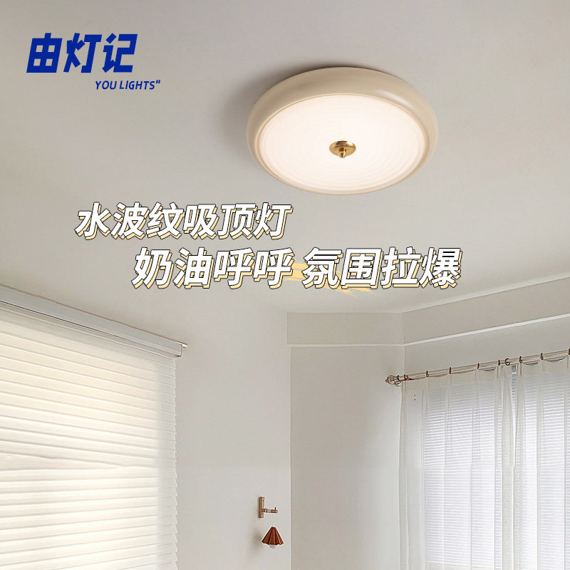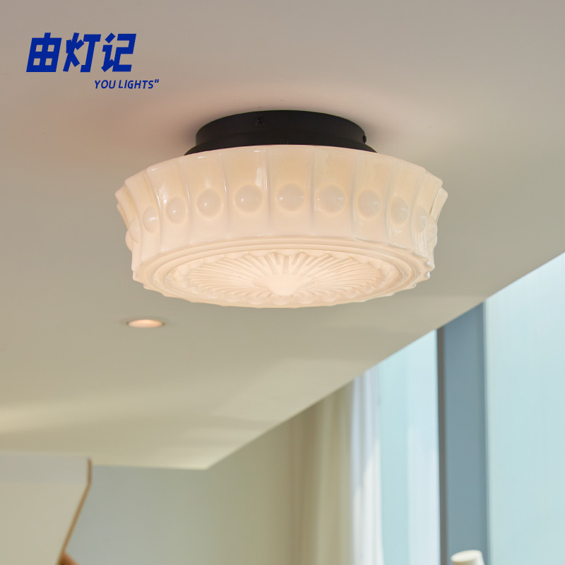由灯记 卧室吸顶灯法式复古书房阳台过道奶油北欧简约中古玻璃灯