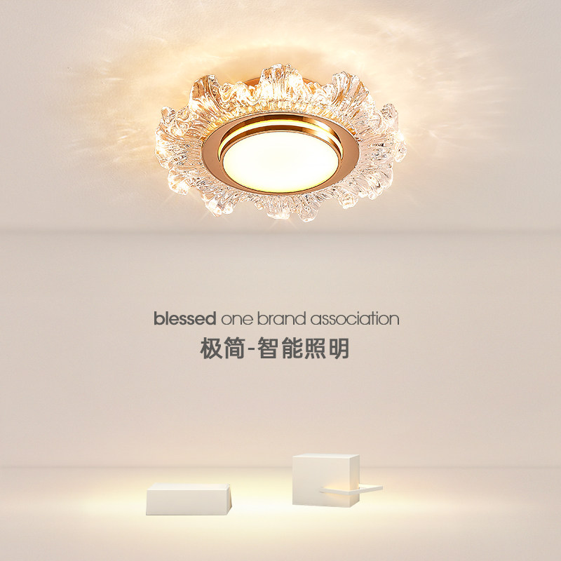 美式创意水晶过道走廊玄关入户阳台灯欧式灯家用吸顶灯具轻奢明装