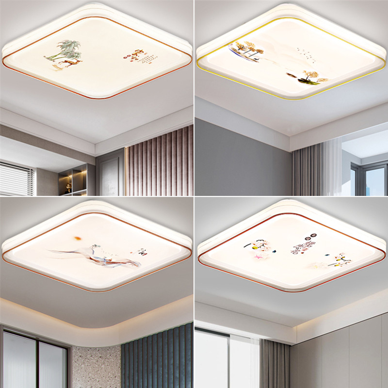 轻奢5D喷画正方形卧室led吸顶灯简约现代超亮书房走廊过道阳台灯