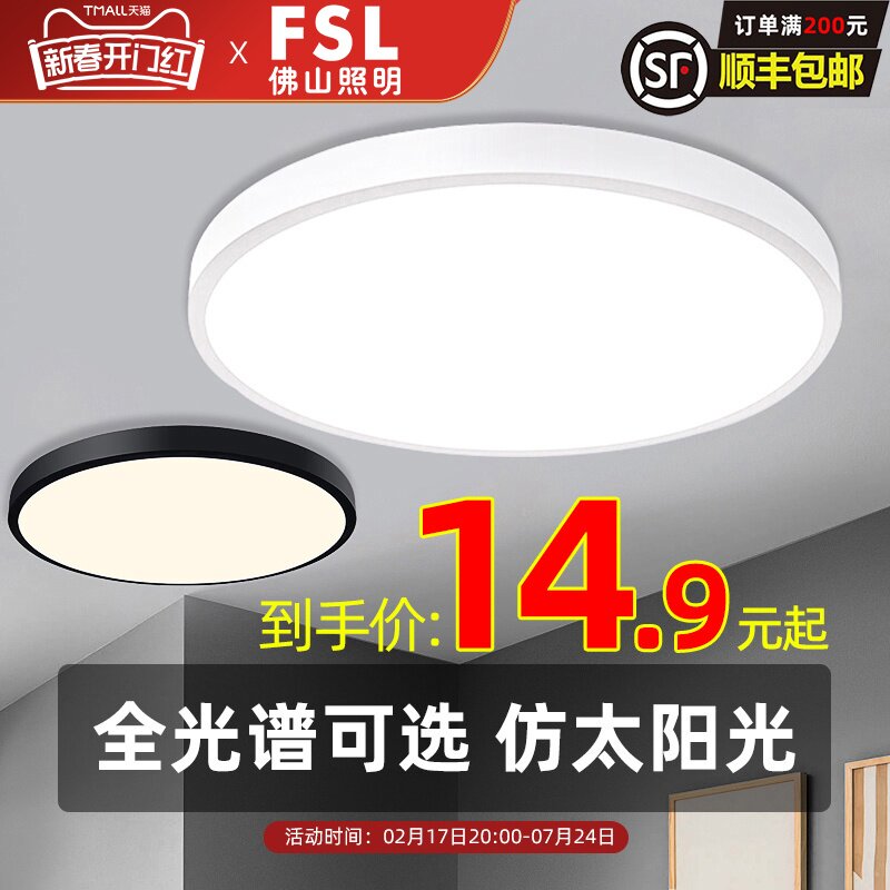 led超薄明装圆形全光谱斗胆灯照明客餐厅无主灯走廊过道吸顶射灯