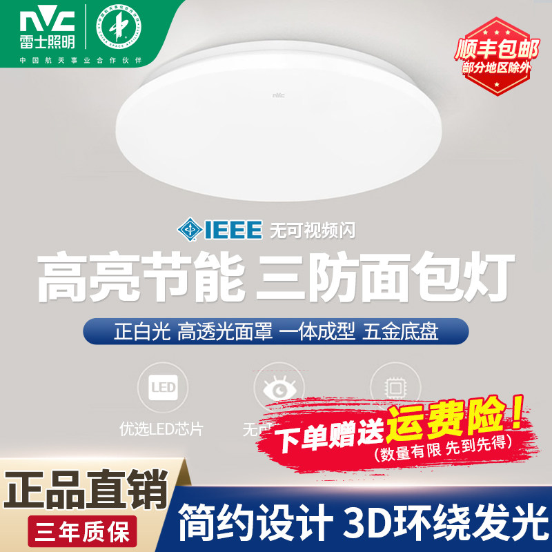 雷士照明卧室LED吸顶灯阳台灯卫生间厨房餐厅走廊过道简约面包灯