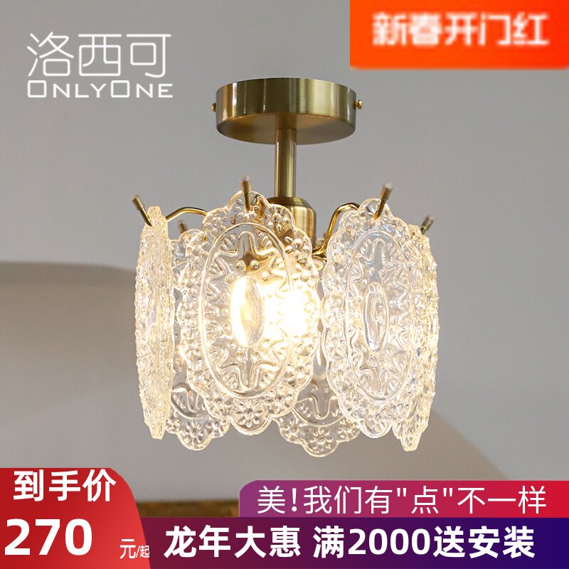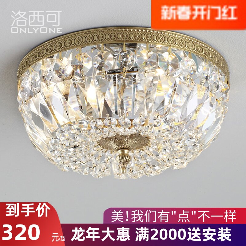 洛西可 法式复古水晶吸顶灯美式全铜卧室阳台过道入户衣帽间灯具