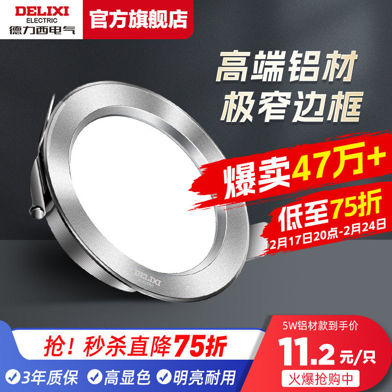 德力西筒灯led全铝材天花灯嵌入式客厅家用开孔吊顶过道桶灯射灯