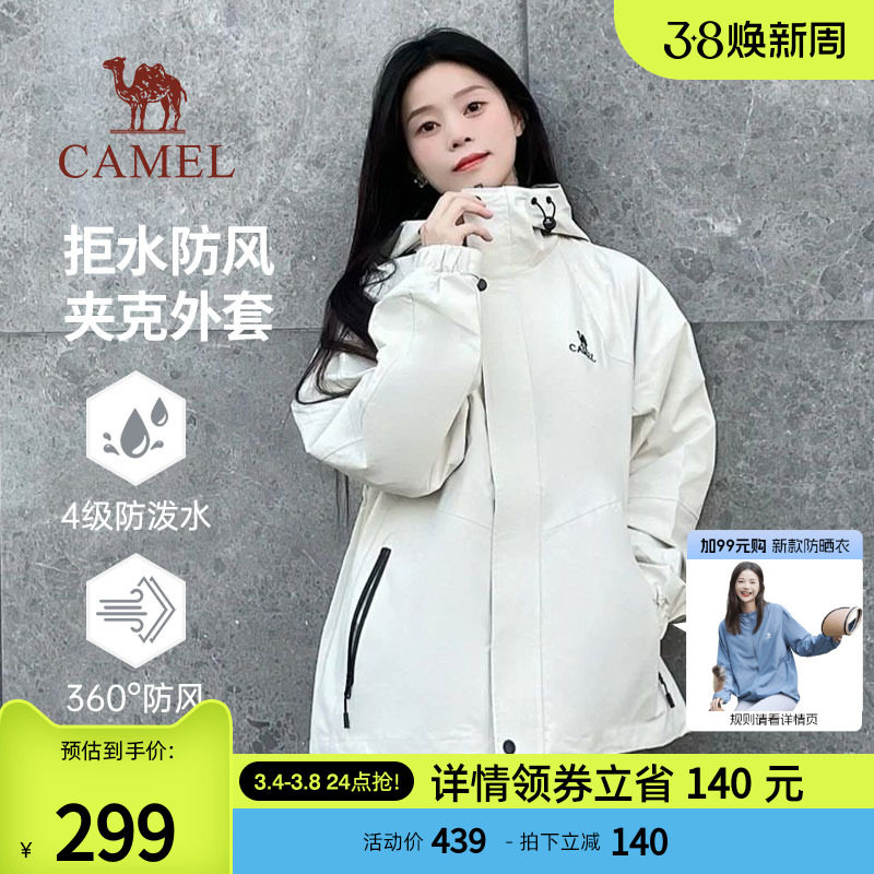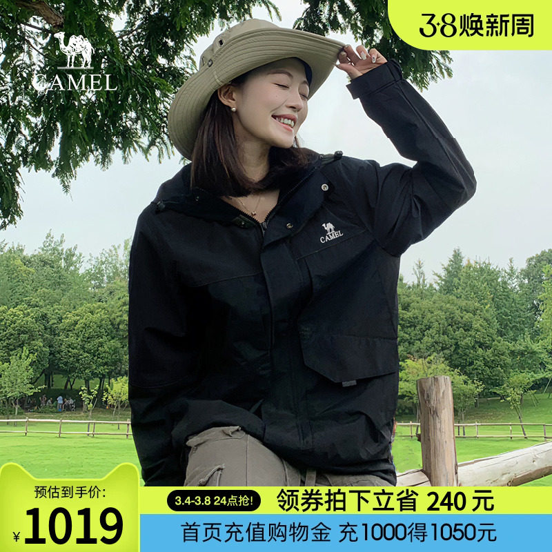 骆驼运动三防外套男女2024春秋薄绒户外休闲防风防水夹克登山服装