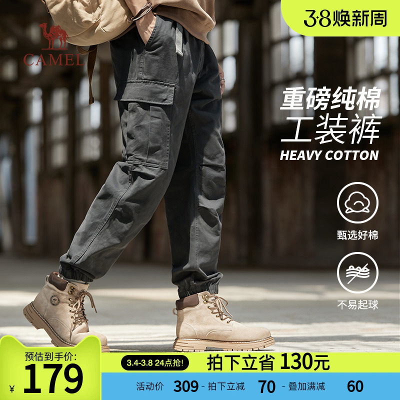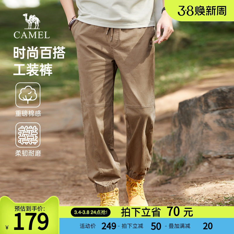 骆驼男装纯棉休闲工装裤2024新款春夏男士宽松束脚户外运动长裤子