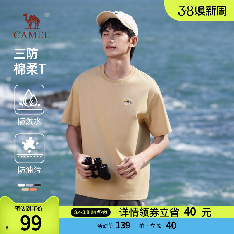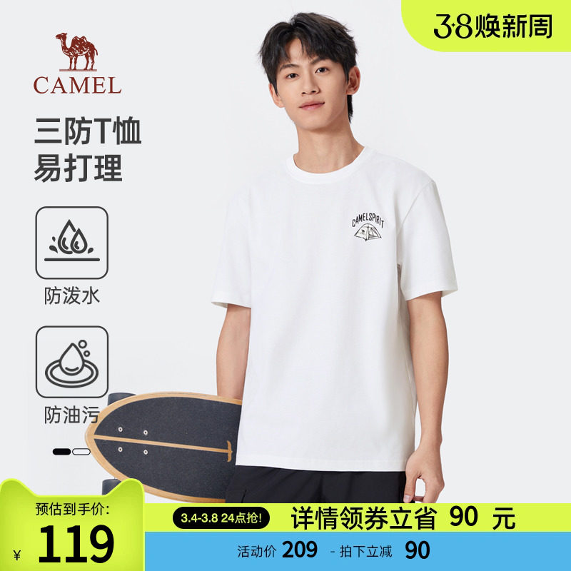 骆驼男装短袖t恤男夏季2024新款三防纯色圆领运动休闲半袖体恤
