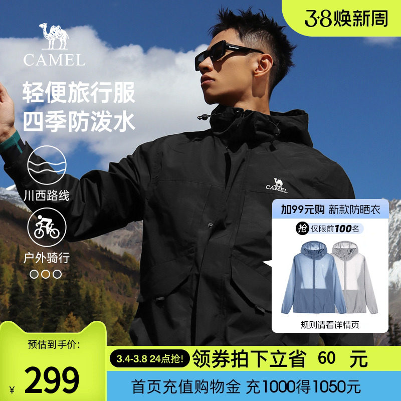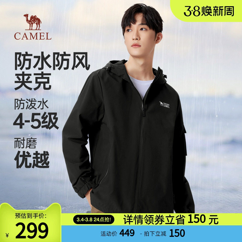 骆驼男装夹克防风防水风衣2023连帽运动户外春秋款情侣外套登山服