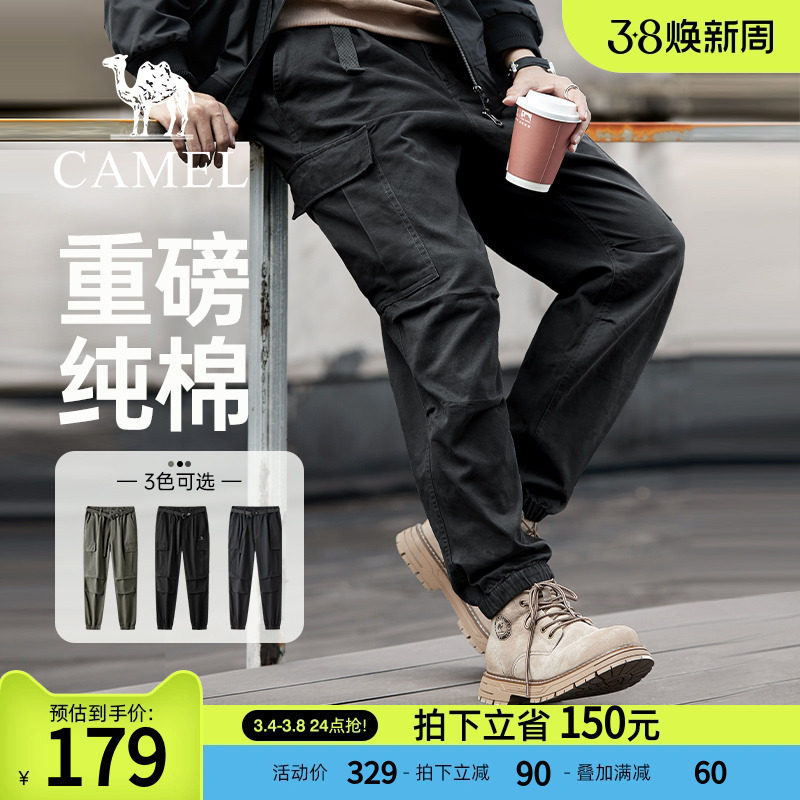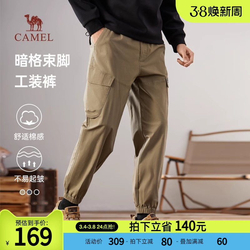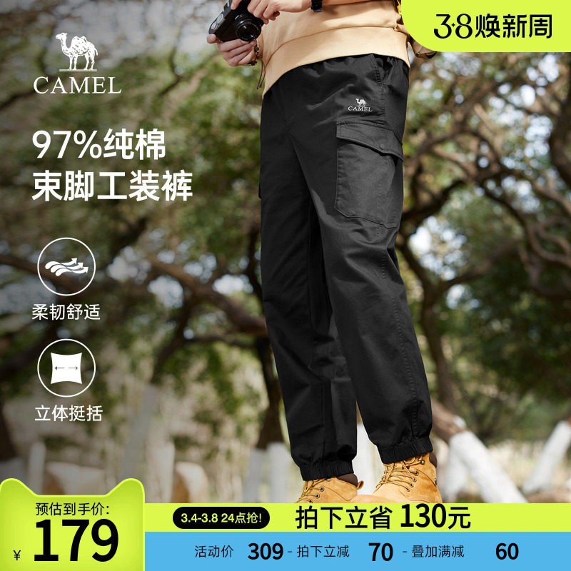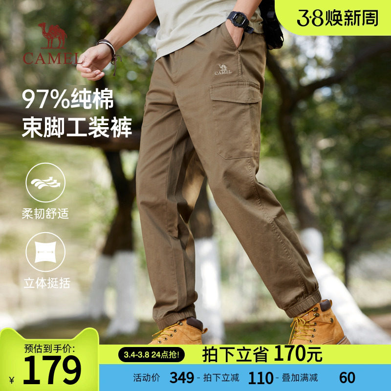 骆驼男装纯棉工装裤男士2024新款春夏季防泼水休闲运动束脚长裤子