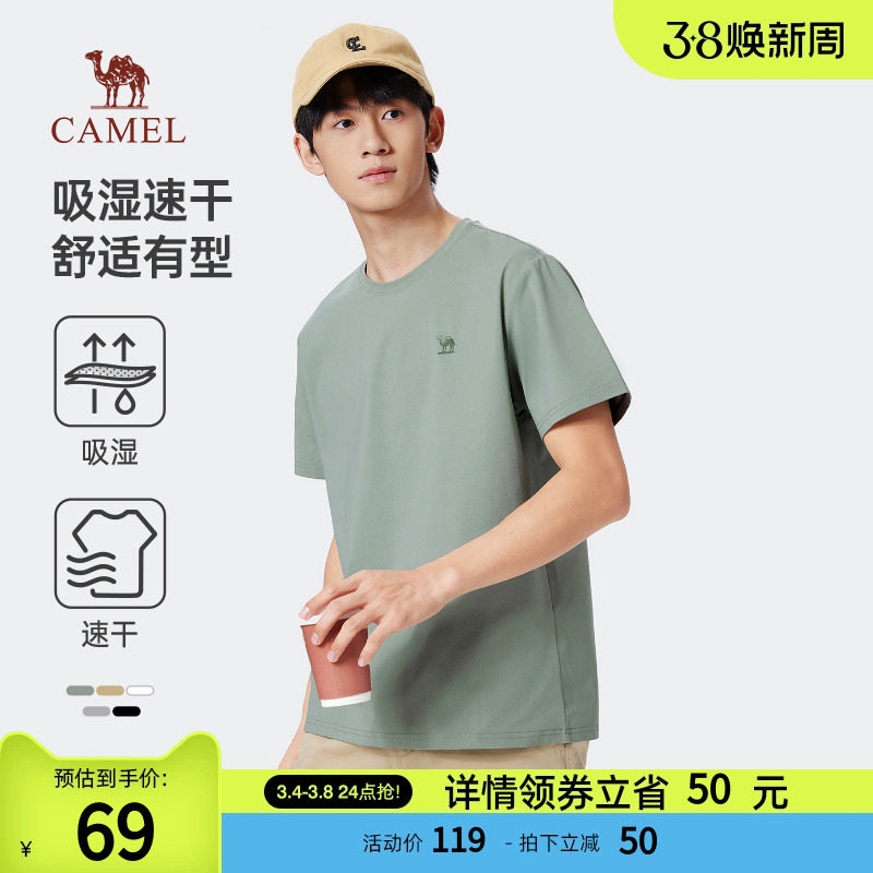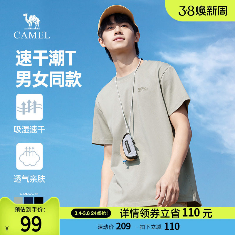 骆驼男装速干短袖t恤男夏季2024新款纯色透气情侣款运动半袖体恤