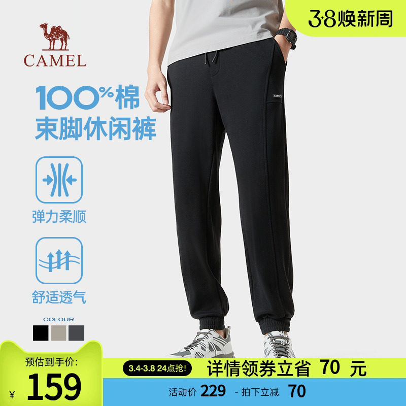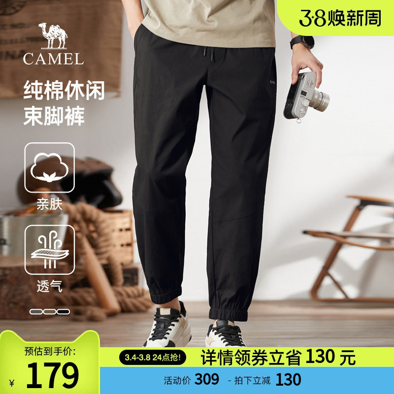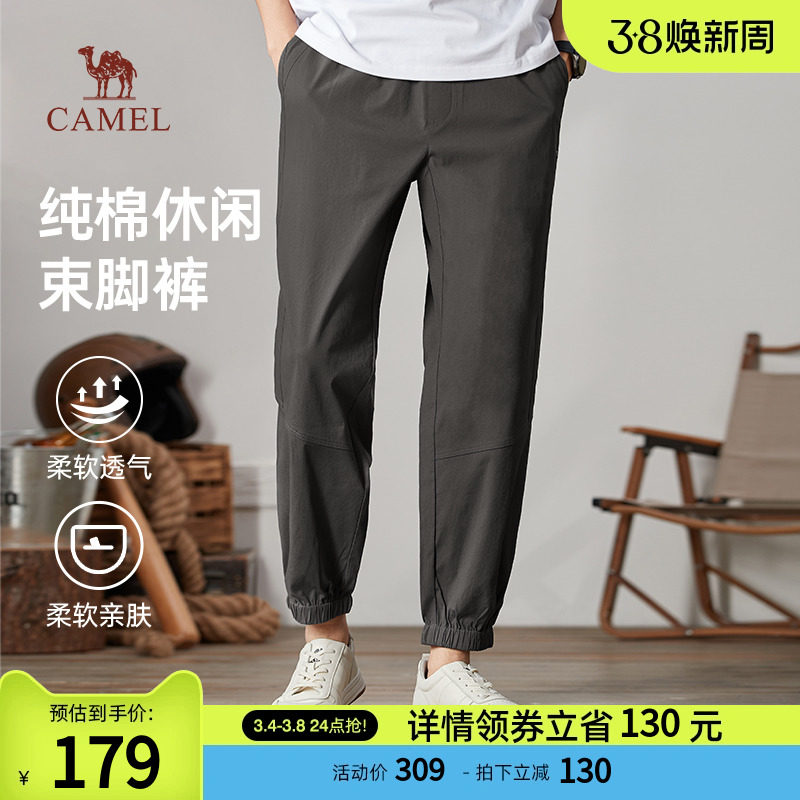 骆驼男装纯棉休闲卫裤男士2024新款春夏季透气弹力运动束脚长裤子