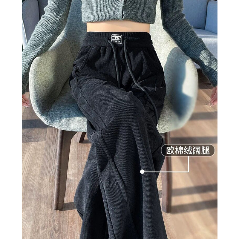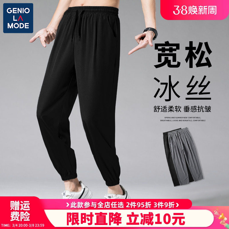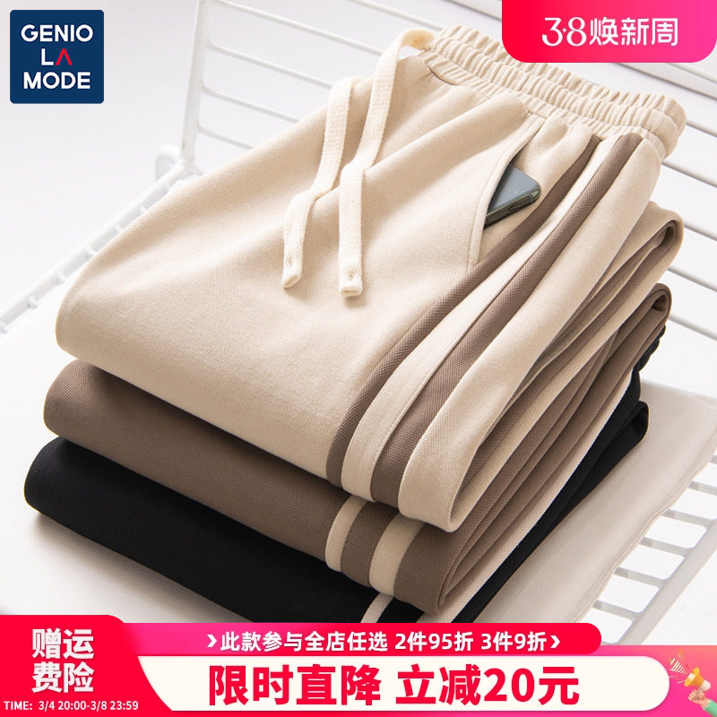 运动裤男春夏季阔腿宽松大码卫裤加绒加厚垂感纯棉直筒休闲长裤子