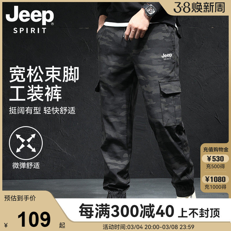 Jeep吉普2024春夏男士运动户外休闲裤百搭冲锋束脚时尚工装裤男