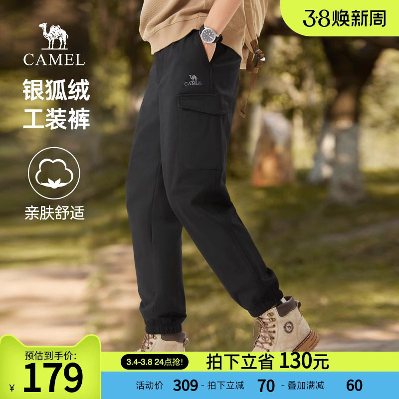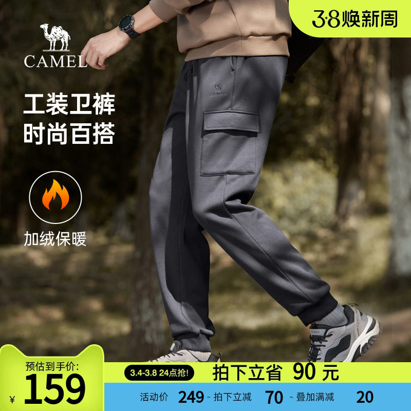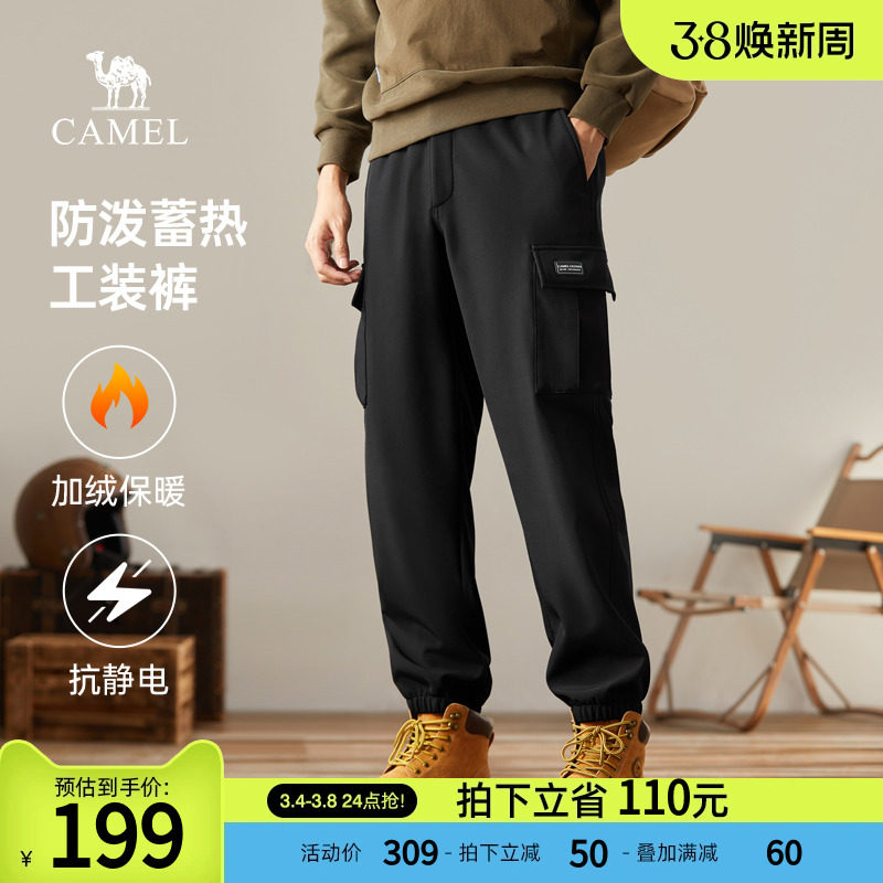 骆驼男装工装裤男冬季2023新款加绒加厚保暖运动束脚防水休闲长裤
