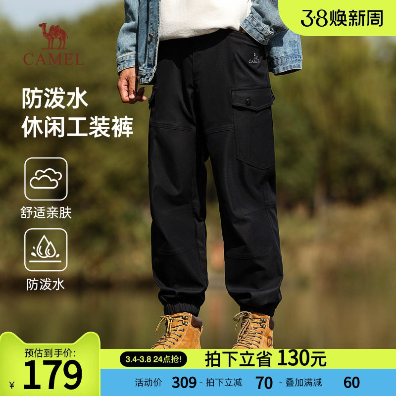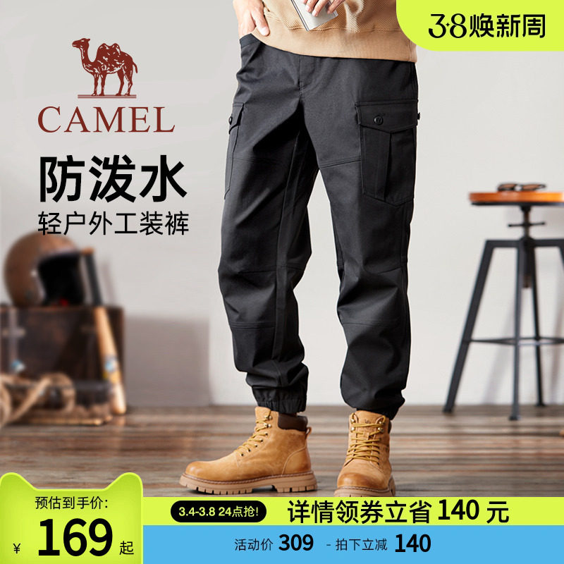 骆驼男装工装裤男士春夏季黑色防泼水休闲户外运动弹力束脚长裤子
