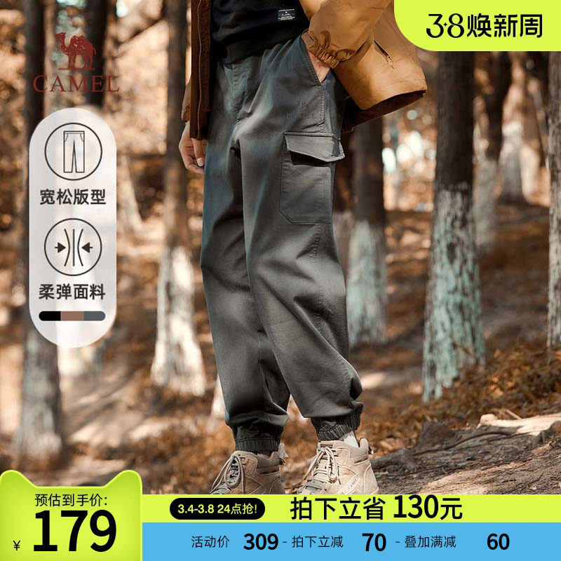 骆驼男装纯棉工装裤男士春夏宽松弹力透气束脚户外运动休闲长裤子