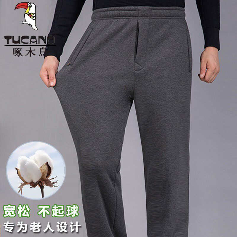 中老年纯棉运动裤男秋冬加绒爸爸裤子宽松大码休闲老人松紧腰长裤