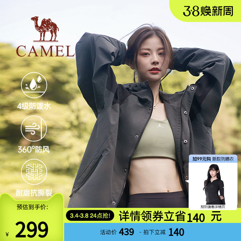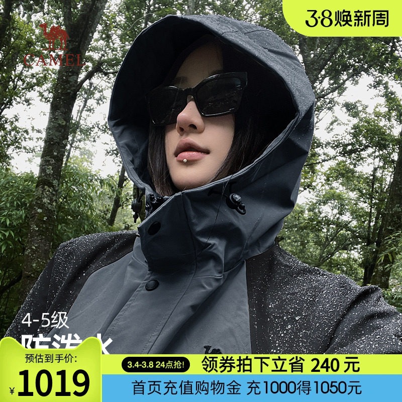 骆驼男女装加厚登山服防水防风夹克拼色风衣2023春秋连帽运动外套