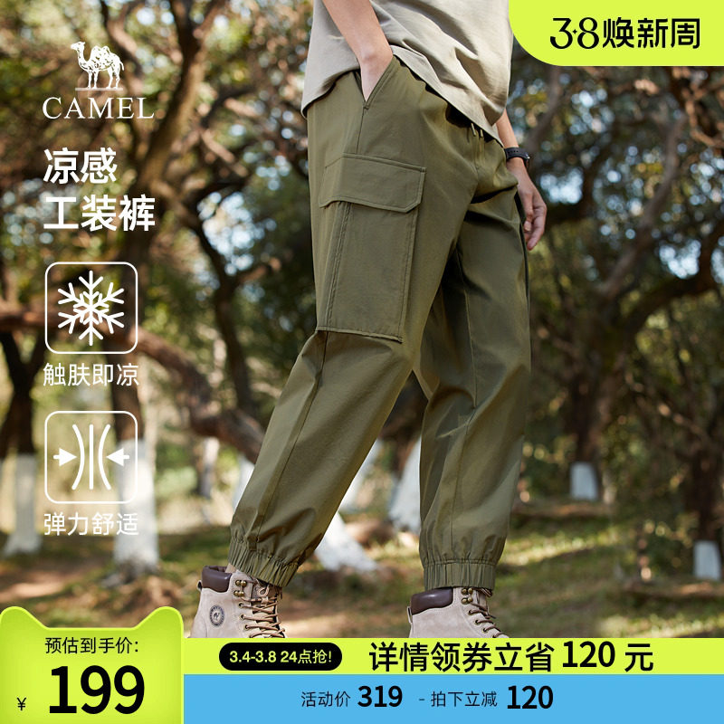 骆驼男装凉感工装裤男士2024新款春夏宽松透气束脚弹力运动长裤子