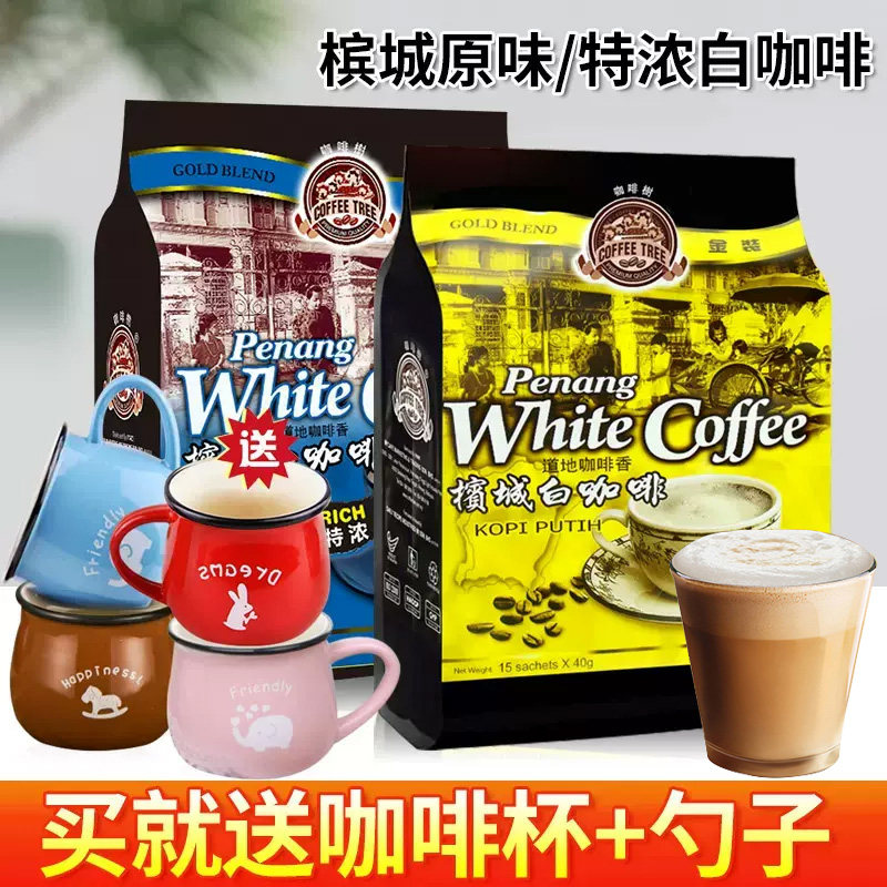 马来西亚进口槟城咖啡树原味特浓白咖啡三合一速溶咖啡粉600g袋装